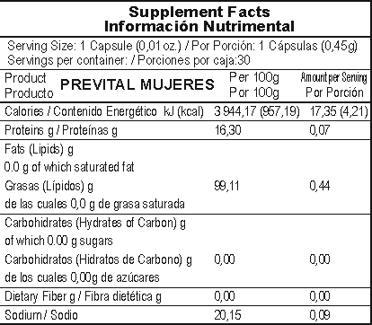 | Marca: | PREVITAL ® MUJERES |